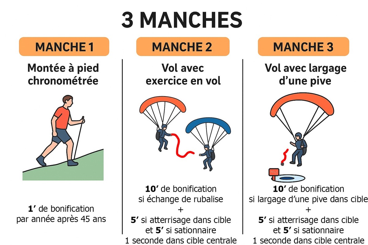 8h : accueil, encaissement, collecte des sacs de parapente, composition des équipes pour exercices aériens (parking du téléphérique à Chalais)